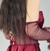 - آستینها: دستکشهای جدا با تور ظریف و سنگدوزی کاملاً کار دست، برای جلوهای خاص و منحصربهفرد
