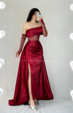 لباس مجلسی تاپلکس سنگدوزیشده با دامن چاکدار – طراحی اختصاصی مزون مهسان