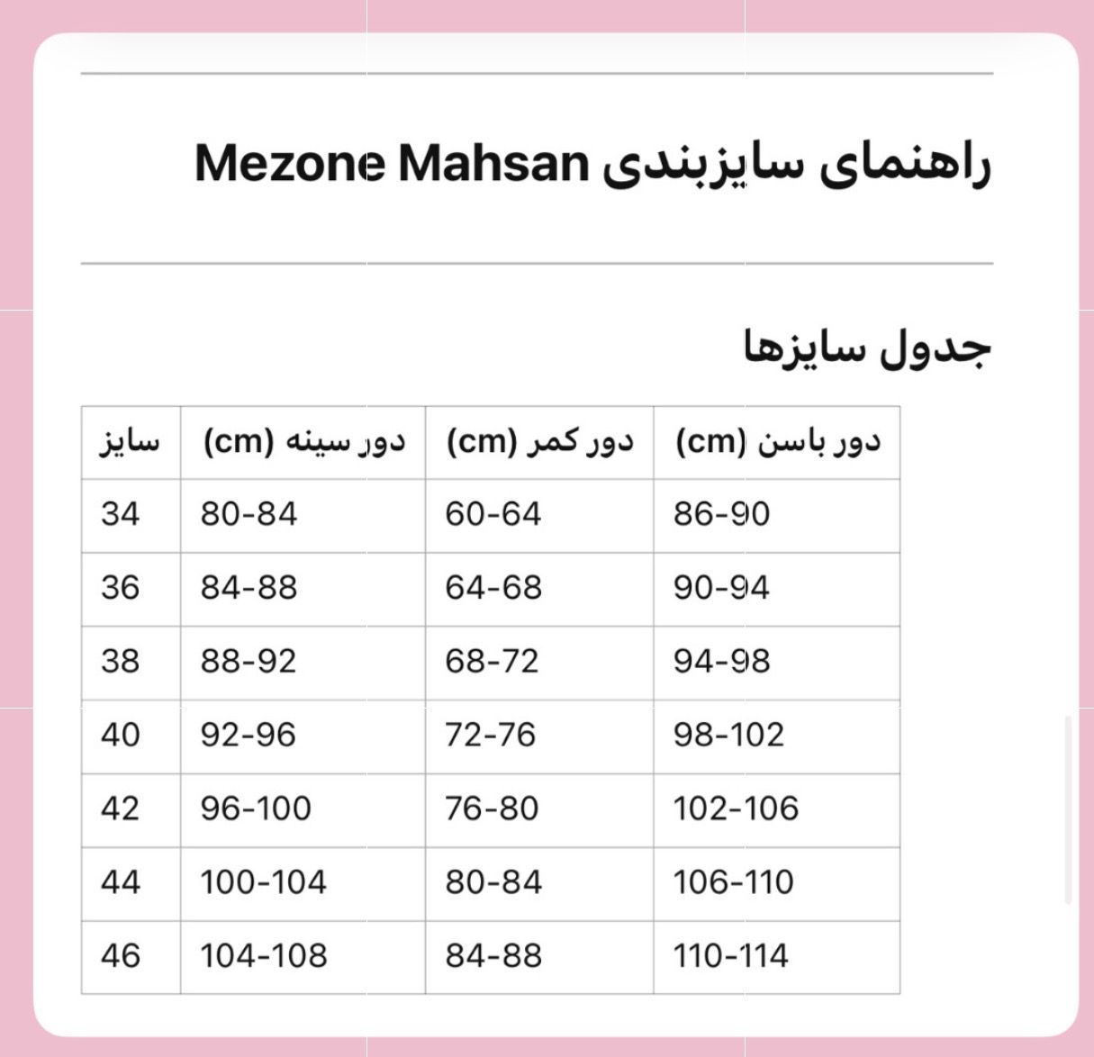 راهنمای سایزبندی